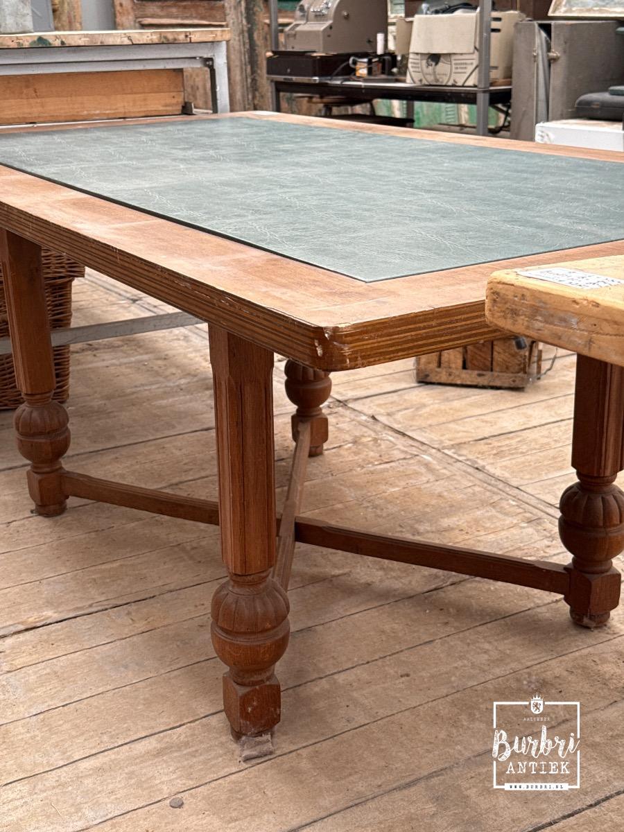 Eettafel Antiek stijl in hout en leer , Europa, in goede staat te koop in Antieke meubels , Tafel & Stoelen | Burbri