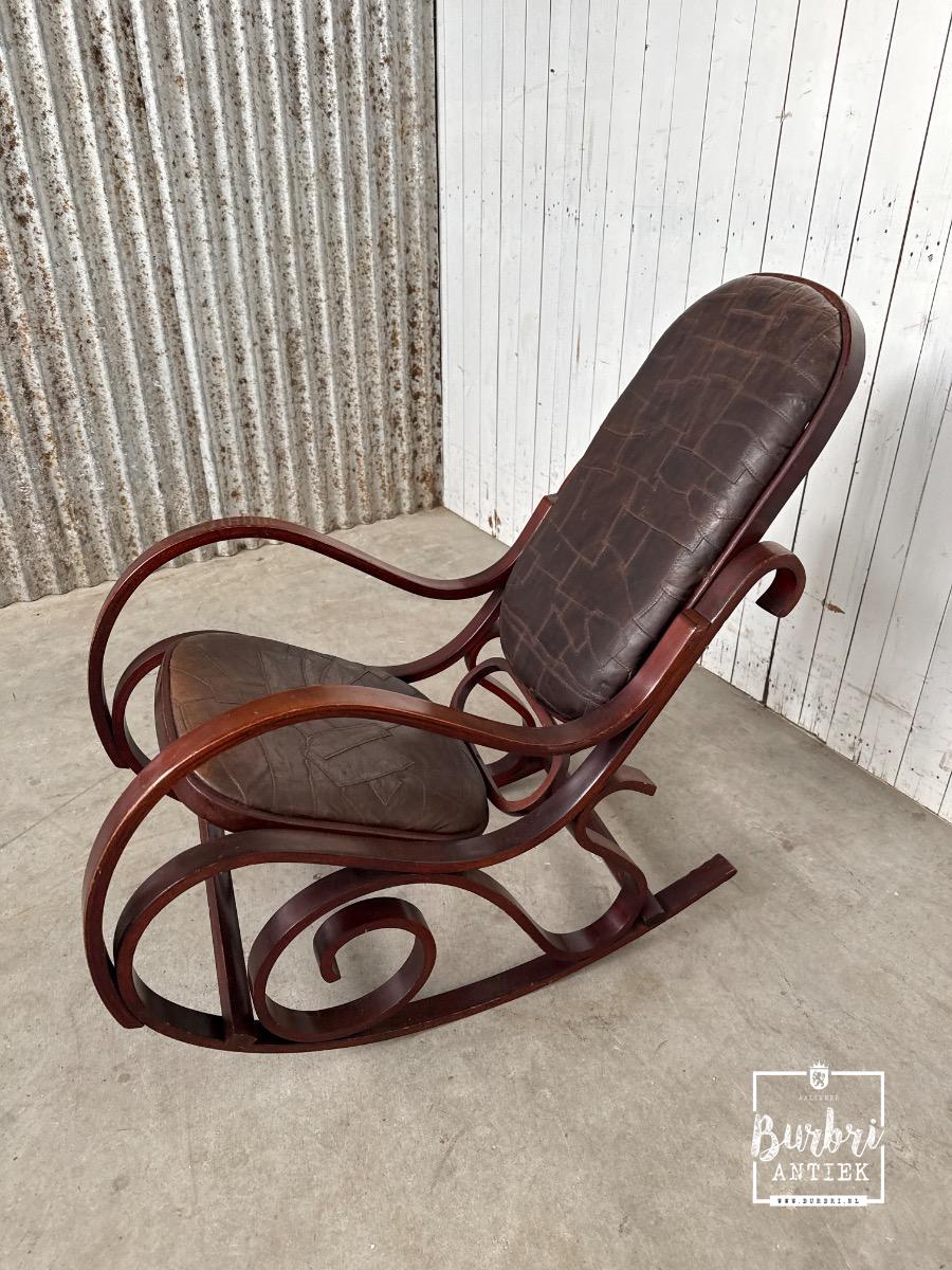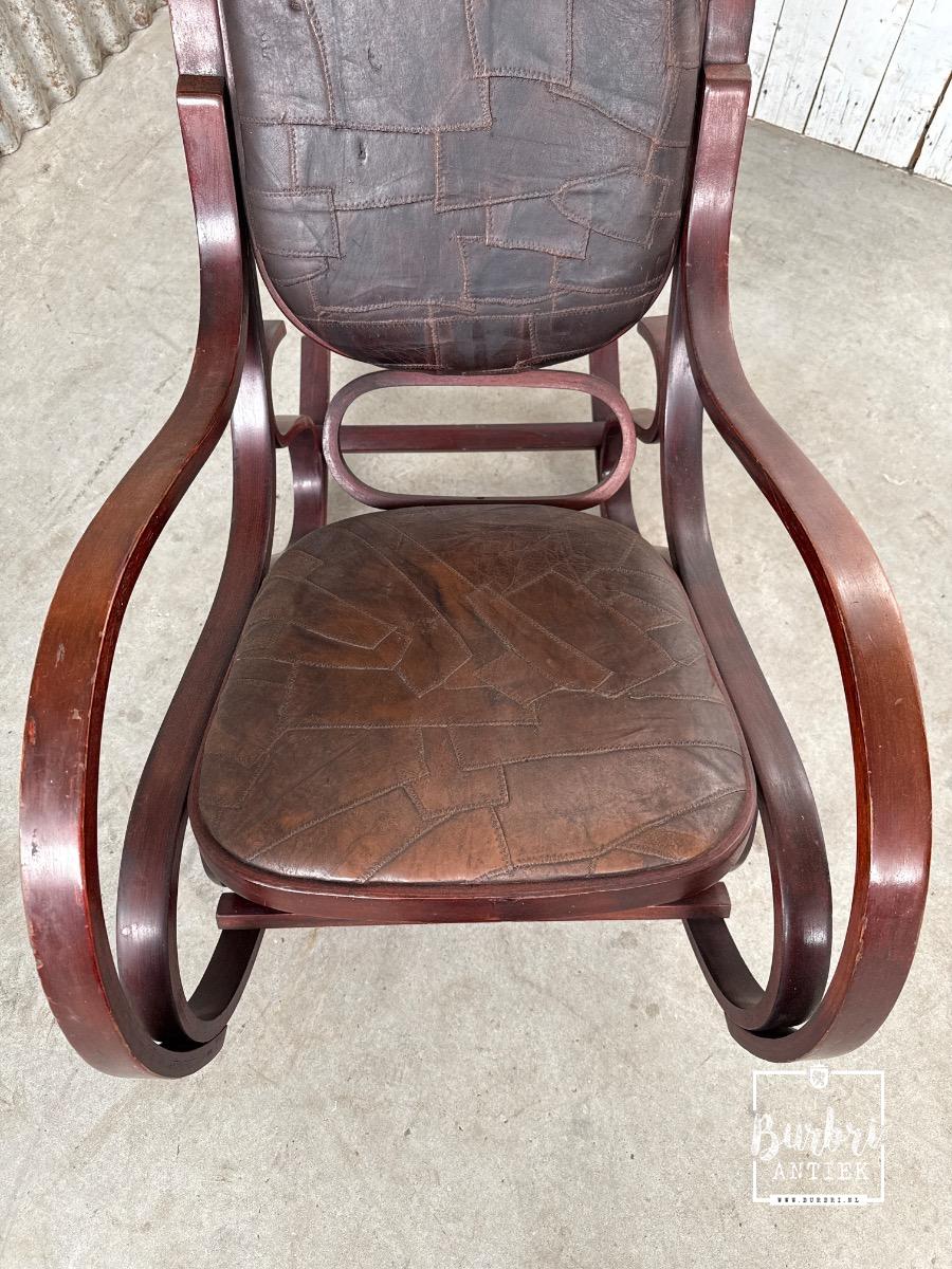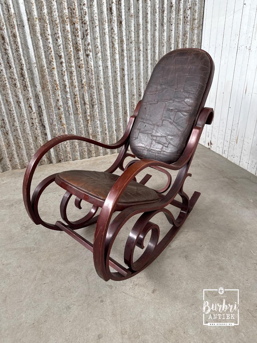 Vintage patchwork design leren schommelstoel stijl in hout en leer , Europa, in goede staat te koop in Antieke meubels , Tafel & Stoelen | Burbri