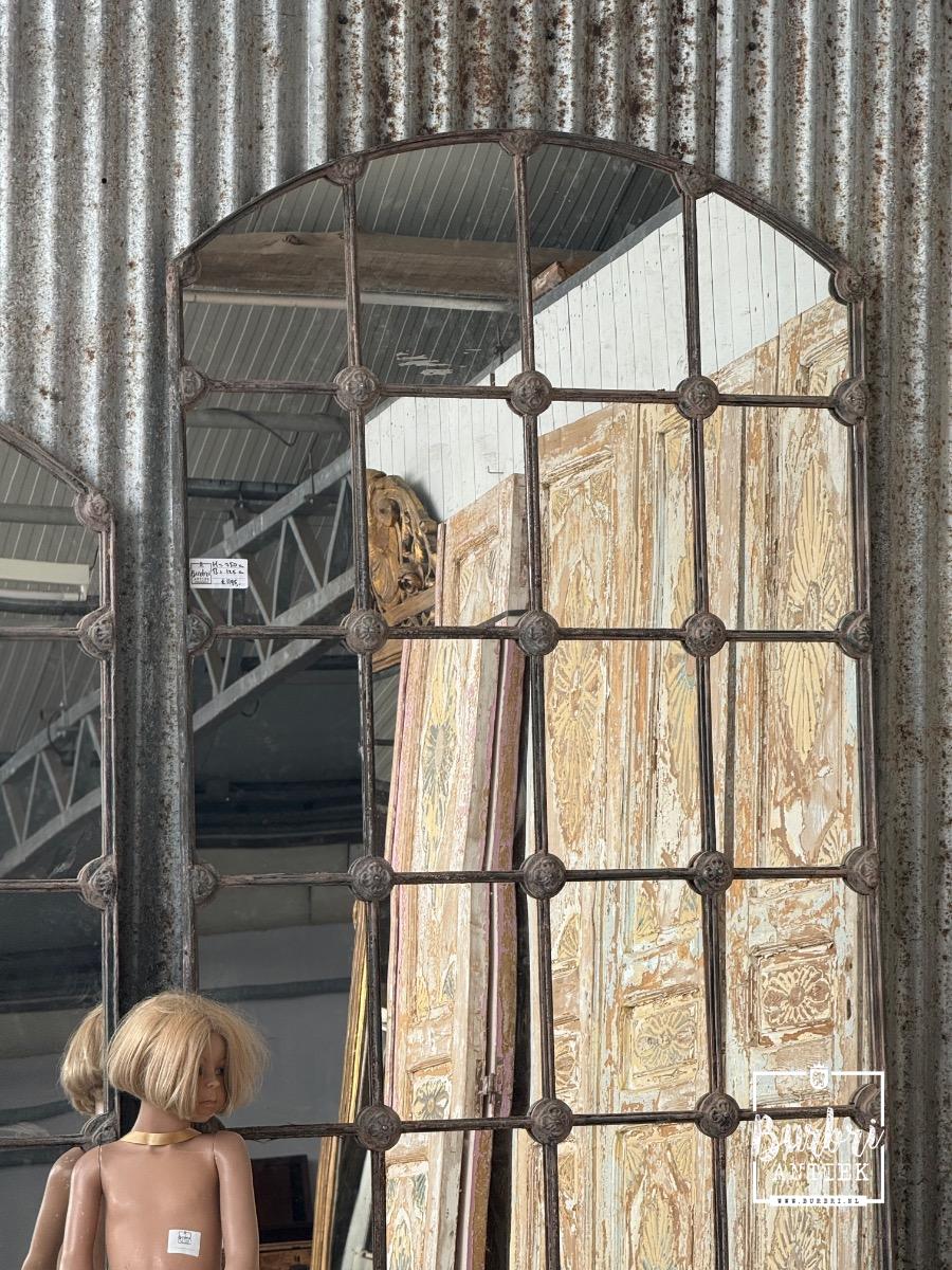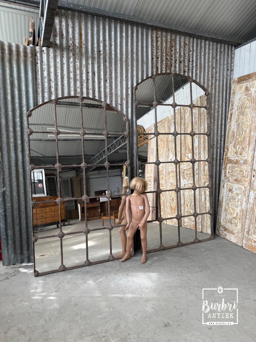 Antiek smeedijzer raamwerk wat we hebben gevonden die we volledig hebben laten reproduceren op deze ambachtelijke manier als vroegerer ijzerwerk met spiegels erin beschikbaar in diverse maten.