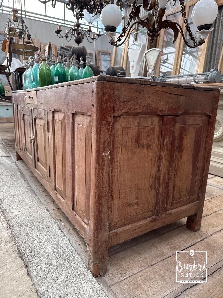 Toonbank Antiek stijl in hout, Sri-Lanka 20e eeuw, in goede staat te koop in Winkelinrichtingen, Antieke toonbanken houten blad | Burbri