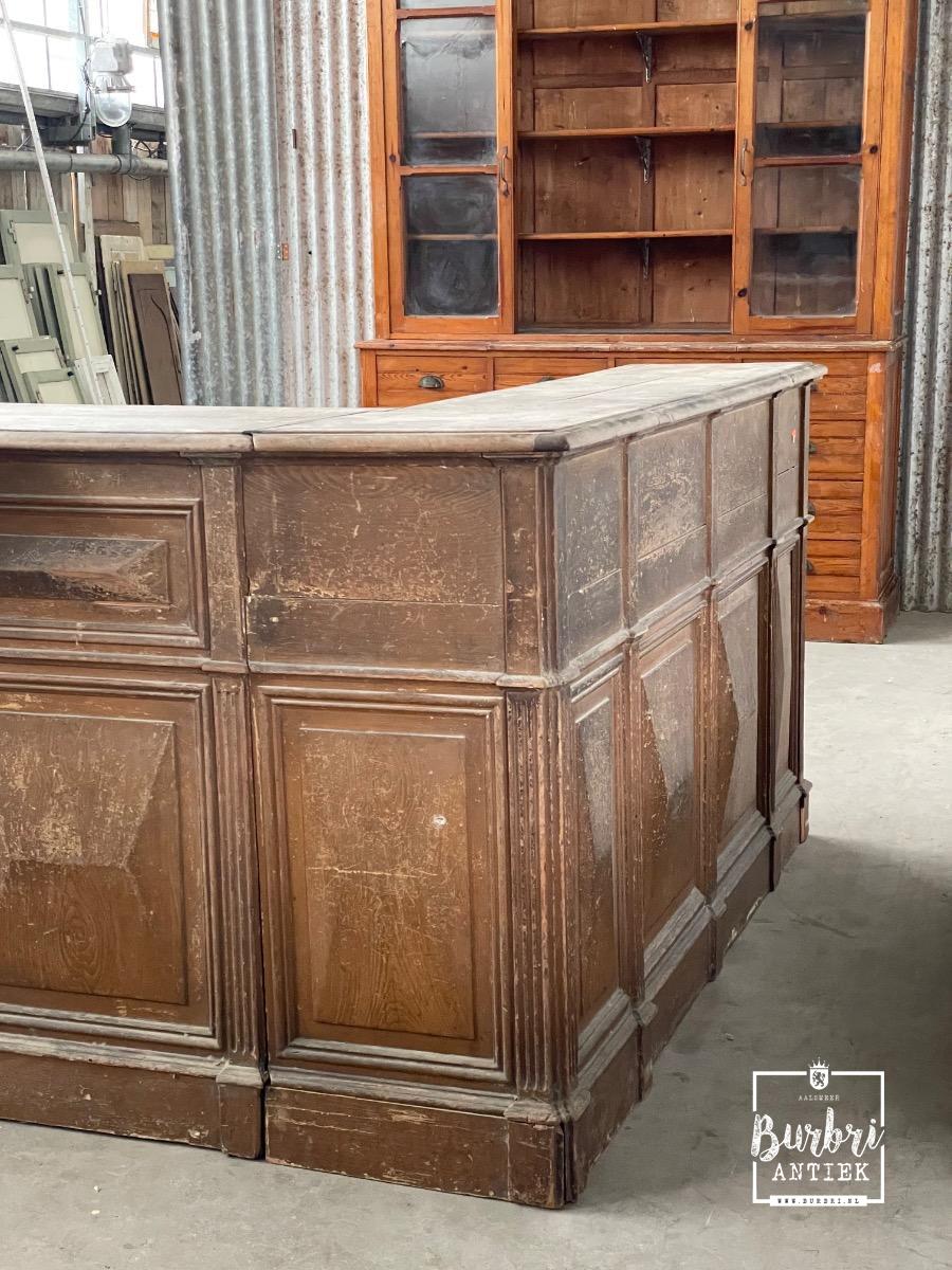 Antieke hoek toonbank met glazen balie, Frankrijk 1900