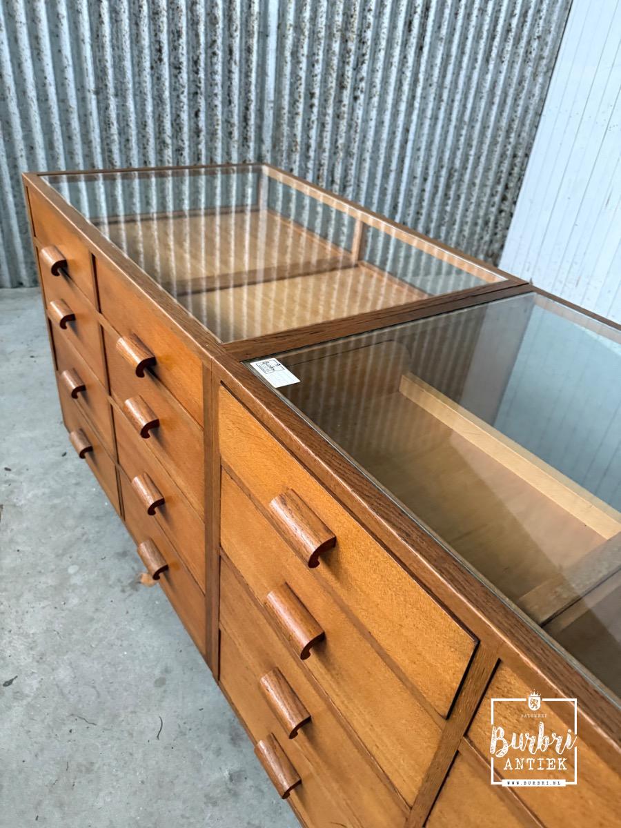 Gigantische toonbank met glas Antiek stijl in hout en glas, europa, in Goede staat staat te koop in Winkelinrichtingen, Antieke toonbanken glas | Burbri