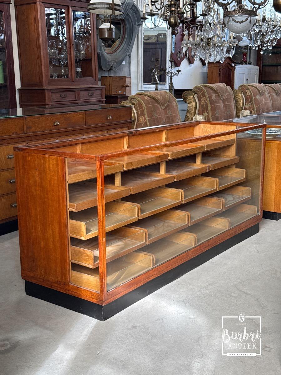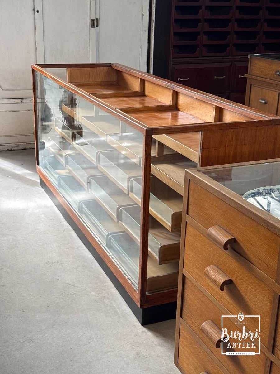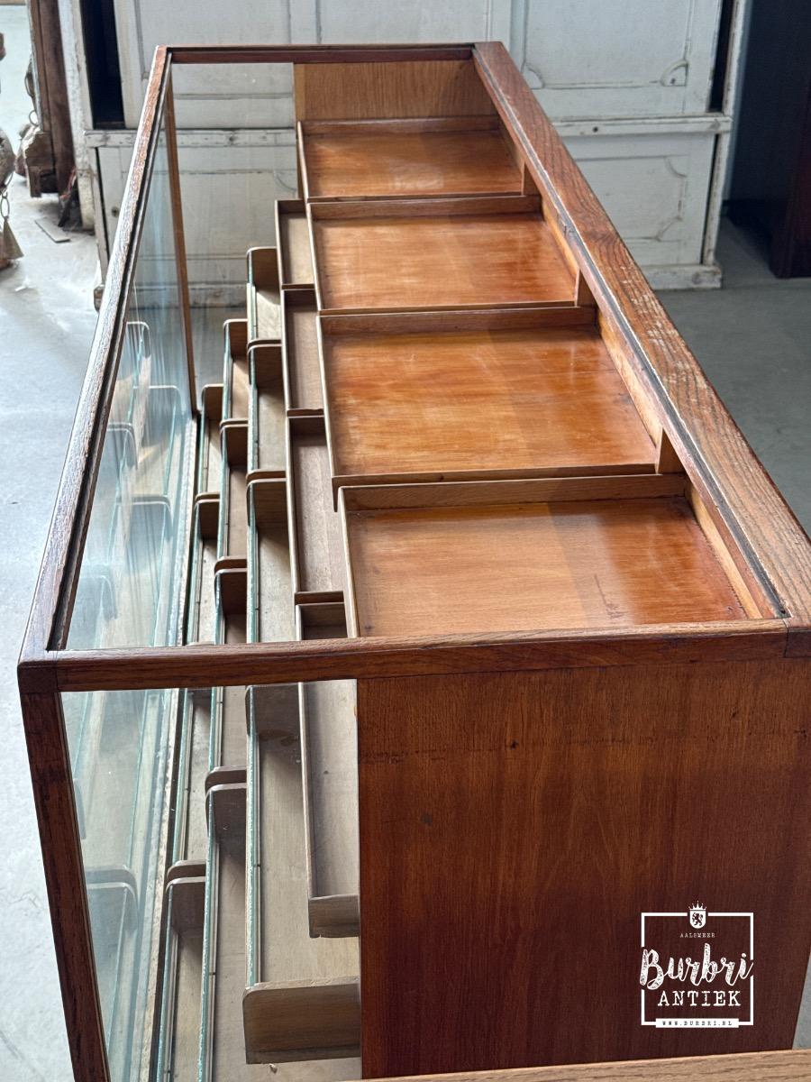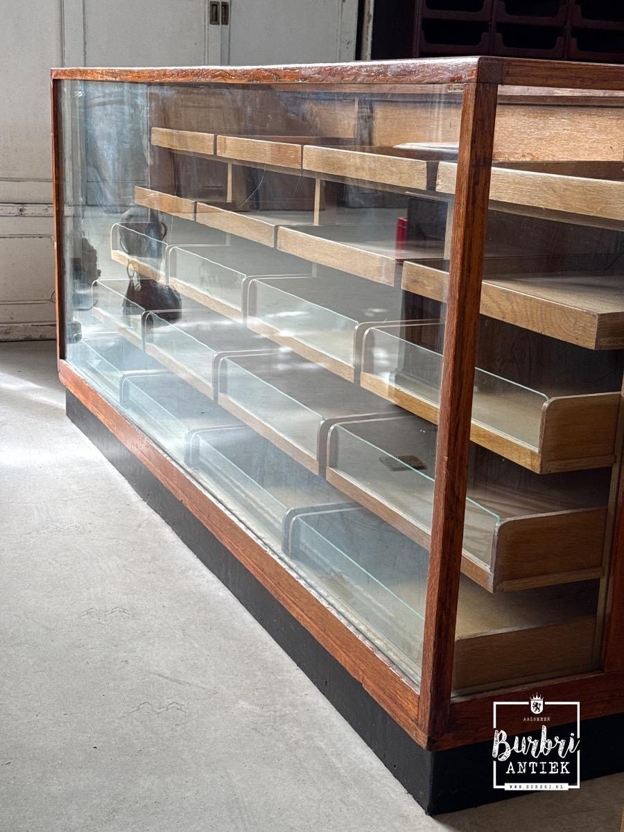 Antique style Counter with glass in wood, Europe, in Good condition condition for sale in Shop fittings, Antique counters glass top | Burbri