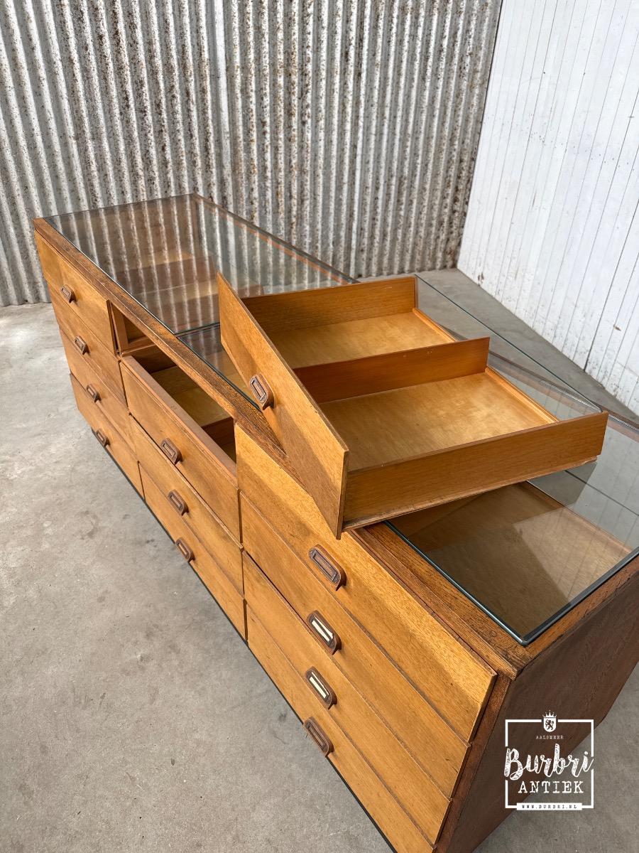 Vintage style Counter in wood and glass, Europa, in good condition for sale in Shop fittings, Antique counters glass top | Burbri