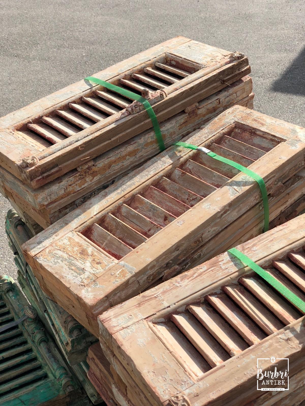 The much-anticipated container, filled with antique doors, shutters, louvre shutters, and building materials, will be unloaded at our location in Aalsmeer.
