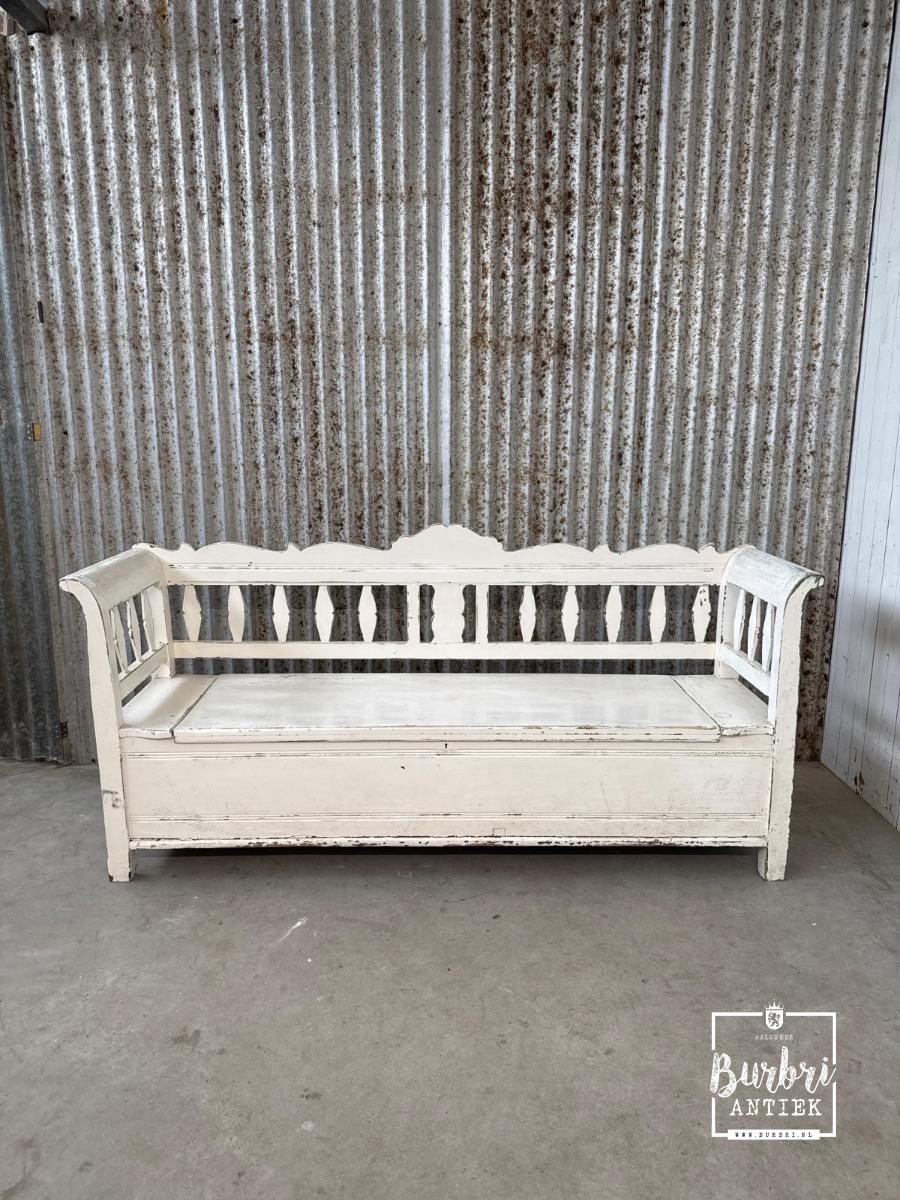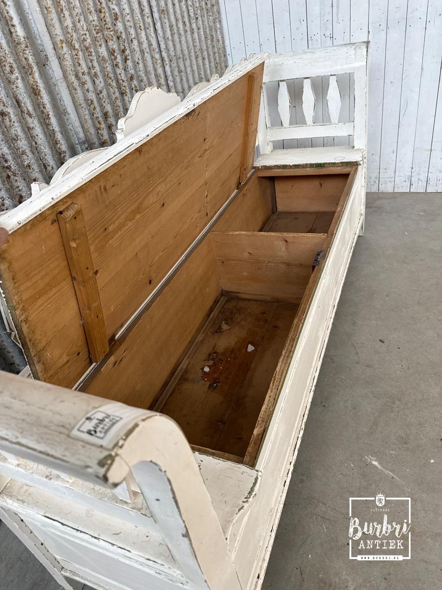 Brocante Witte Klepbank Met Opbergruimte stijl in hout , Frankrijk 20e eeuw, in goed staat te koop in Antieke meubels , Antieke banken | Burbri