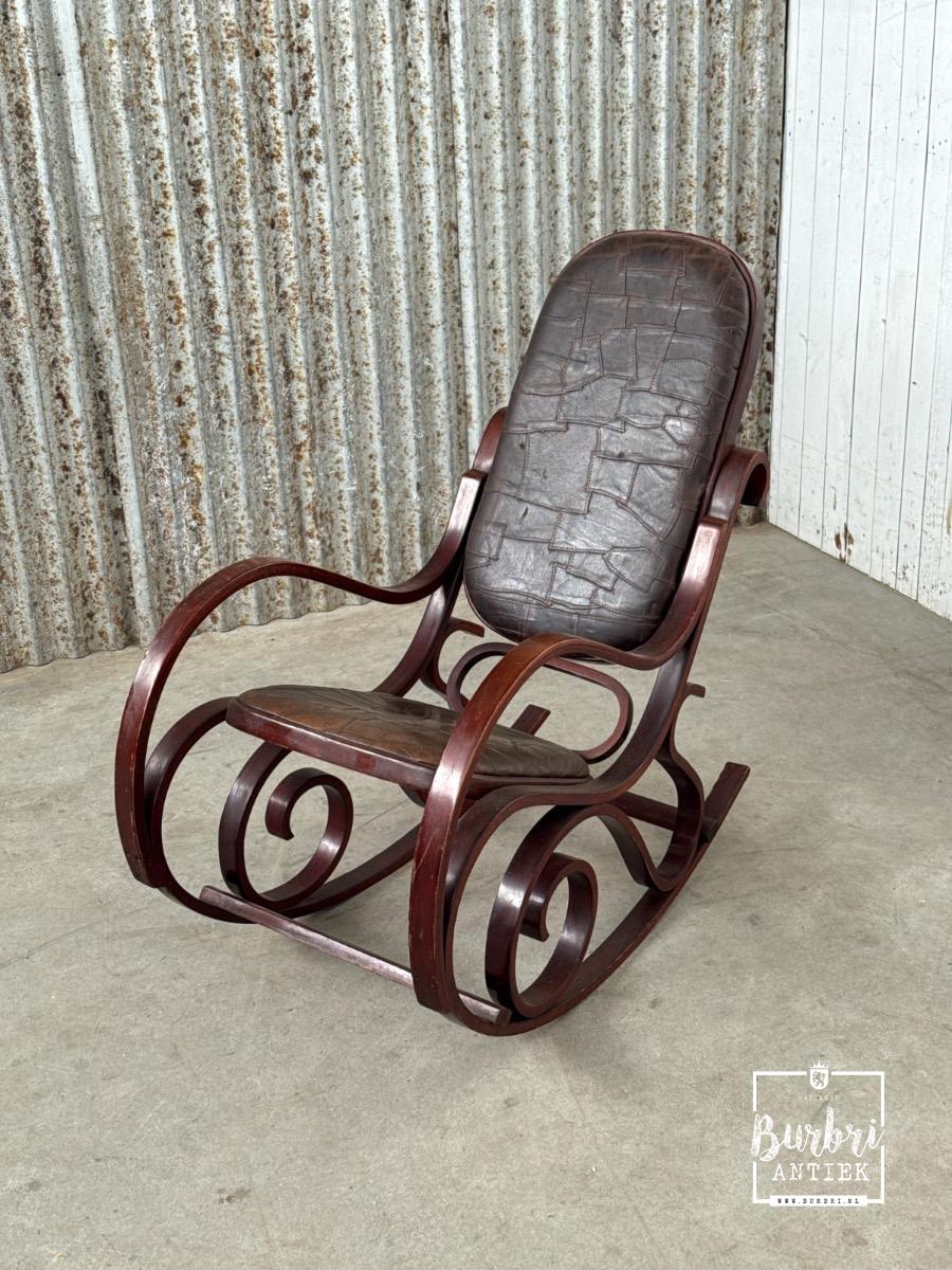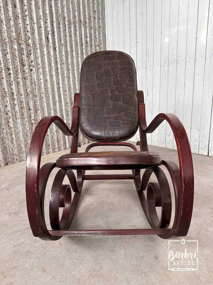 Vintage patchwork design leren schommelstoel stijl in hout en leer , Europa, in goede staat te koop in Antieke meubels , Tafel & Stoelen | Burbri