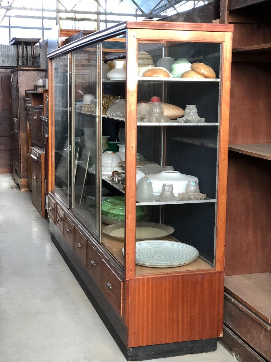 Antiek Antieke winkelkast met glas en hout Argentinië, 1920