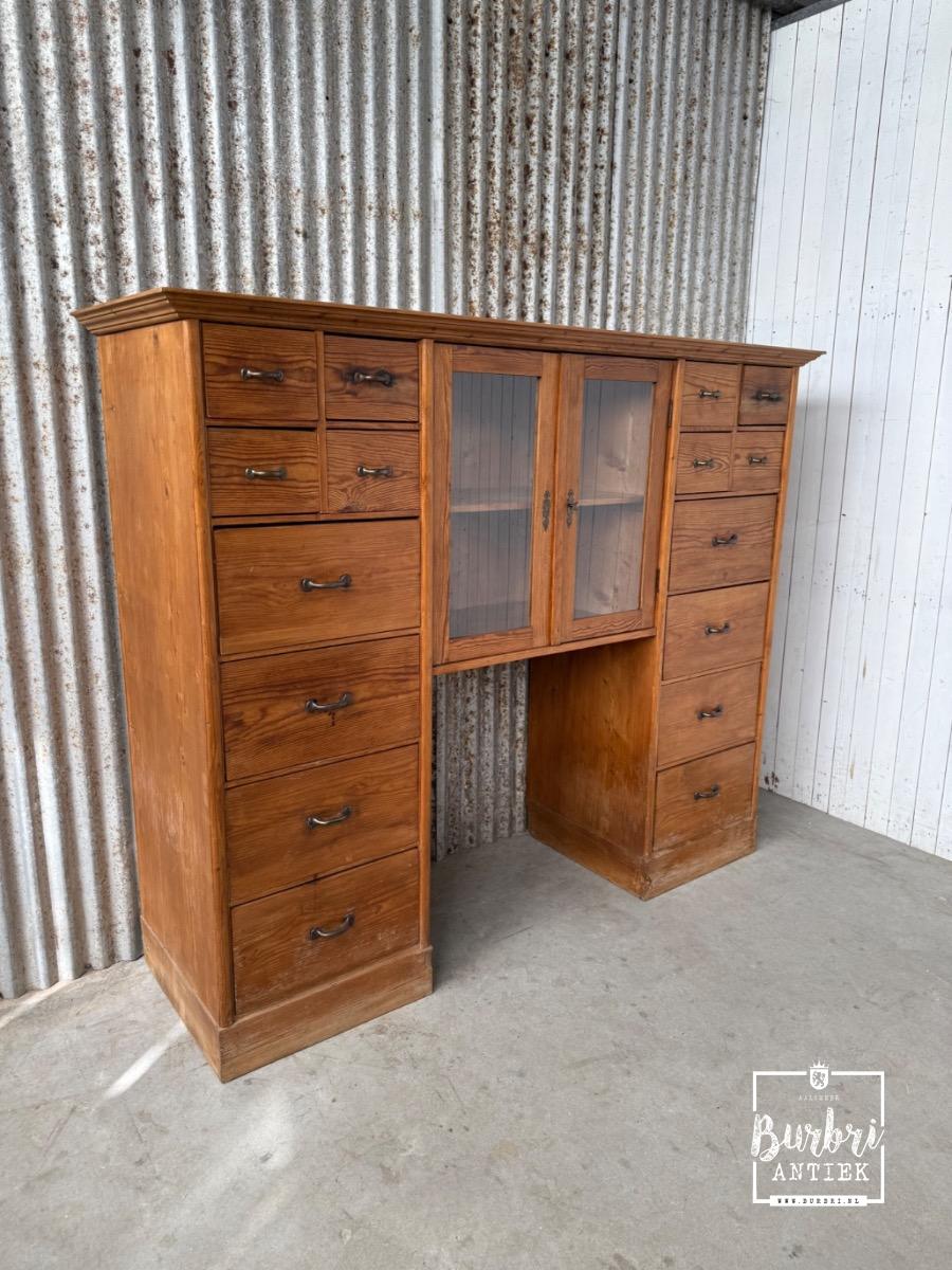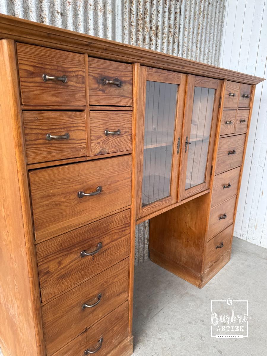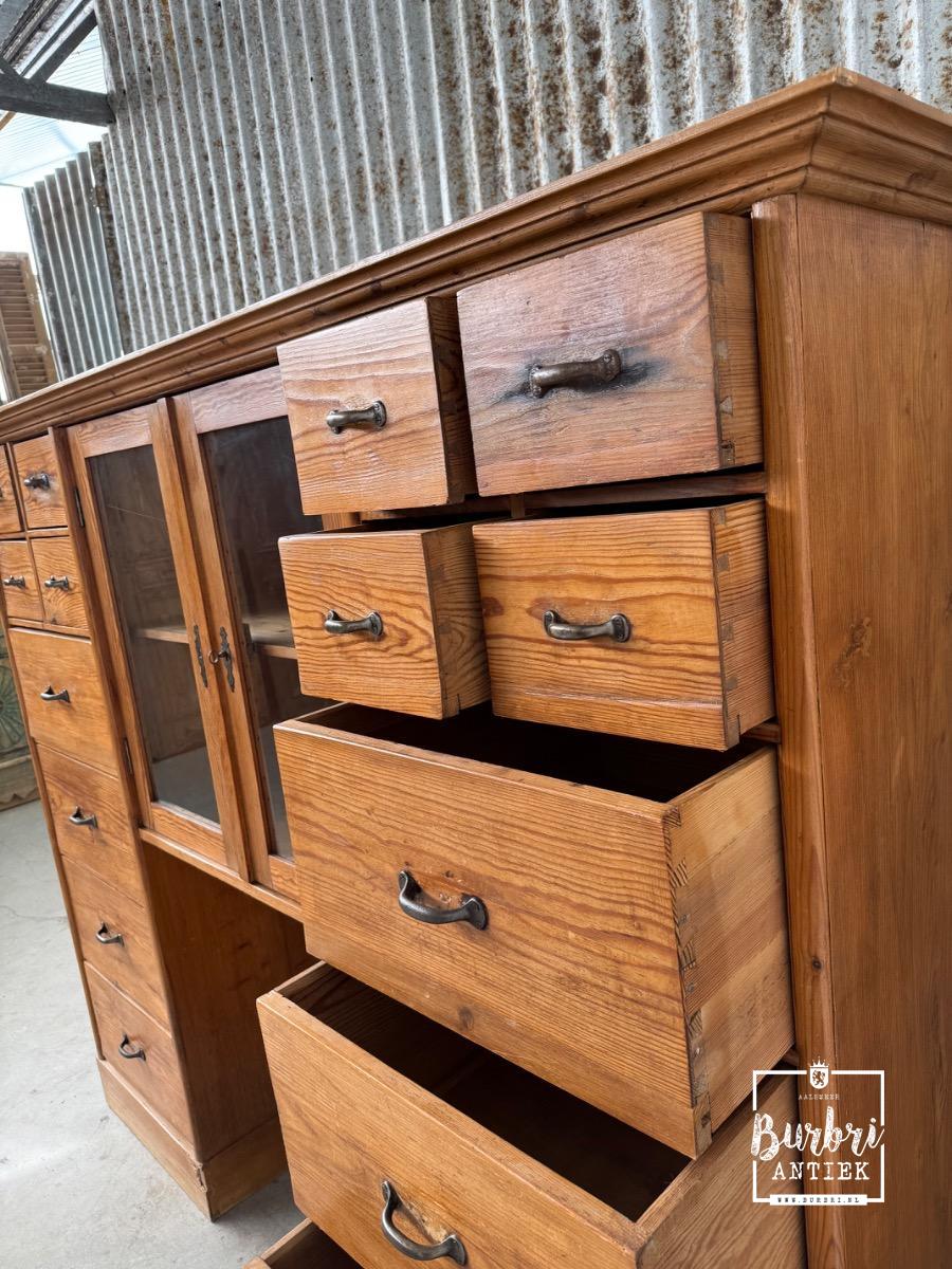 Winkelkast Antieke grenen stijl in Hout en glas , Europa 20e eeuws, in Vintage staat staat te koop in Winkelinrichtingen, Antieke winkelkasten | Burbri