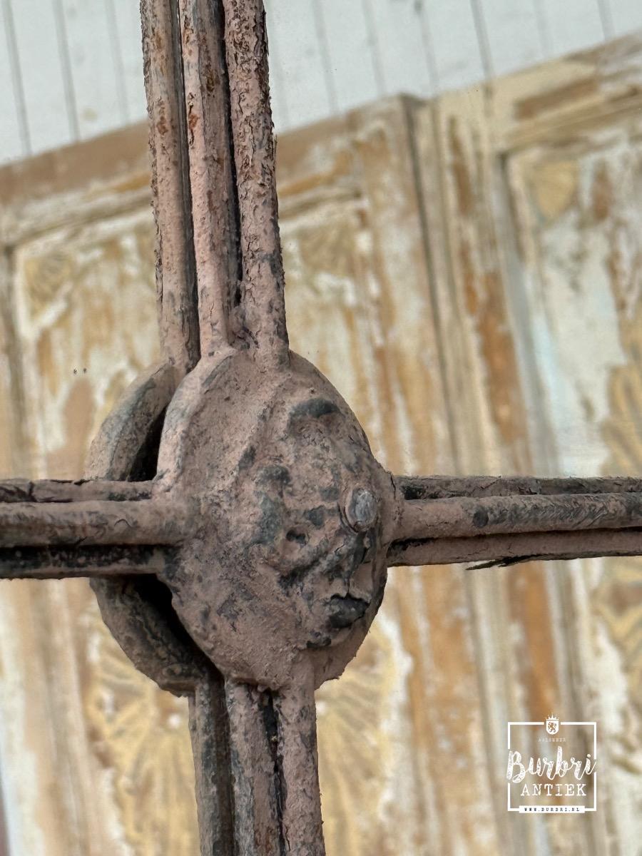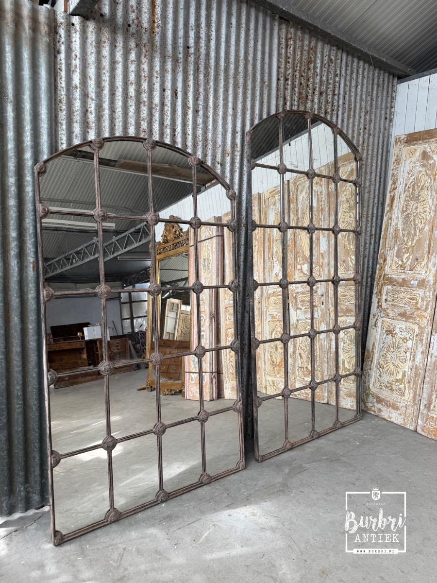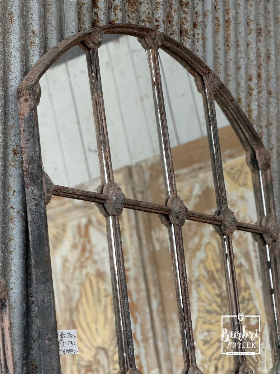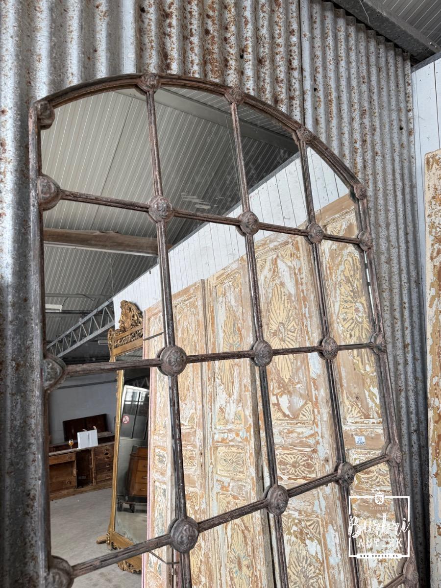 Antiek smeedijzer raamwerk wat we hebben gevonden die we volledig hebben laten reproduceren op deze ambachtelijke manier als vroegerer ijzerwerk met spiegels erin beschikbaar in diverse maten.