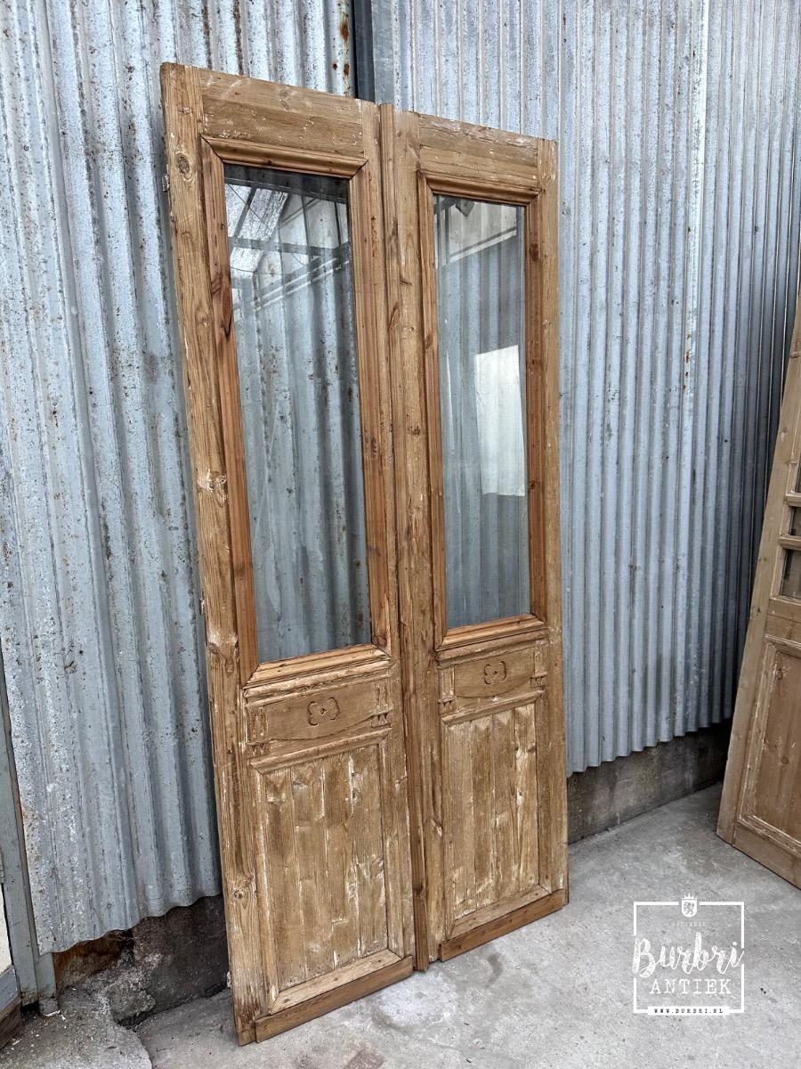 Antique style Doors with glass in Wood and glass, Europe 20th century, in Good condition condition for sale in Old building materials, Antique set doors with glass | Burbri