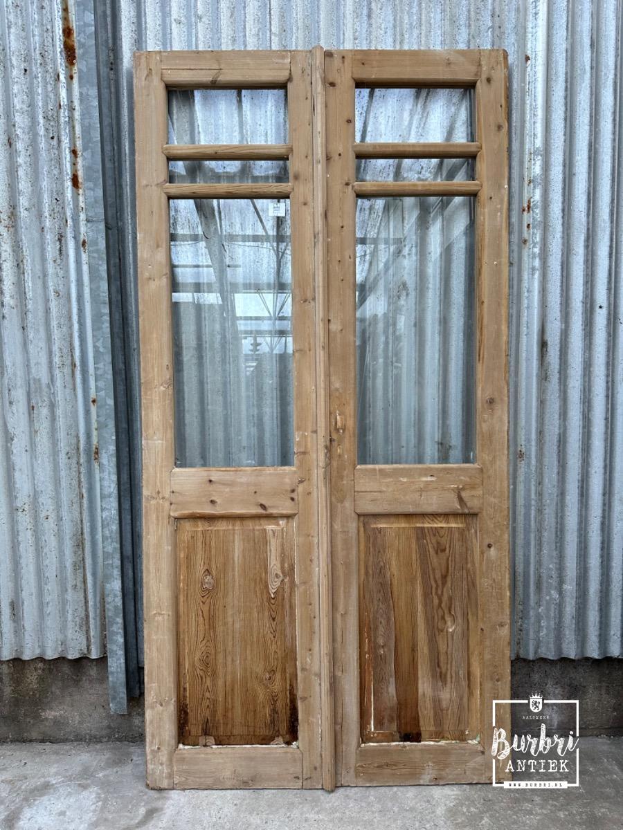 Antique style Doors with glass in Wood and glass, Europe 20th century, in Good condition condition for sale in Old building materials, Antique set doors with glass | Burbri