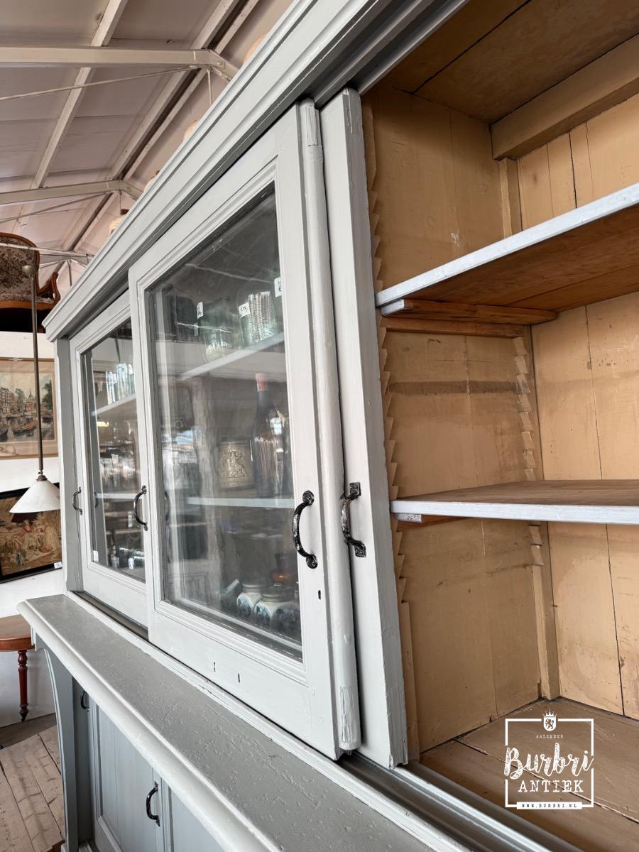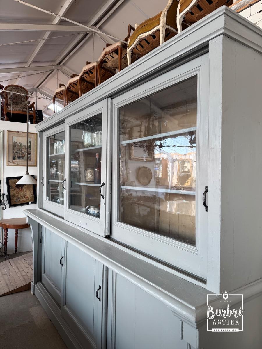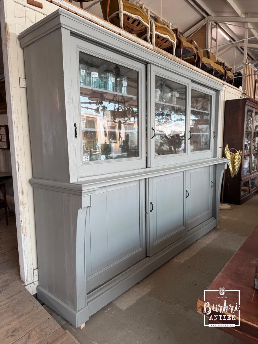 Antique style Shopcabintet gray in wood and glas 20- century, in good condition for sale in Shop fittings, Antique shop cabinets | Burbri