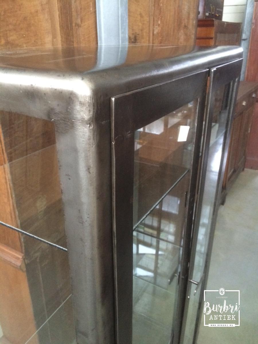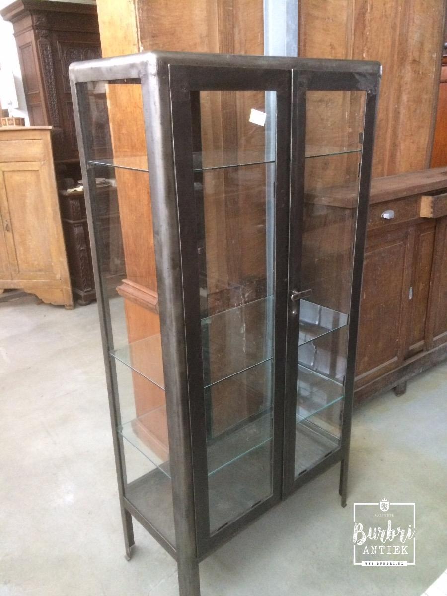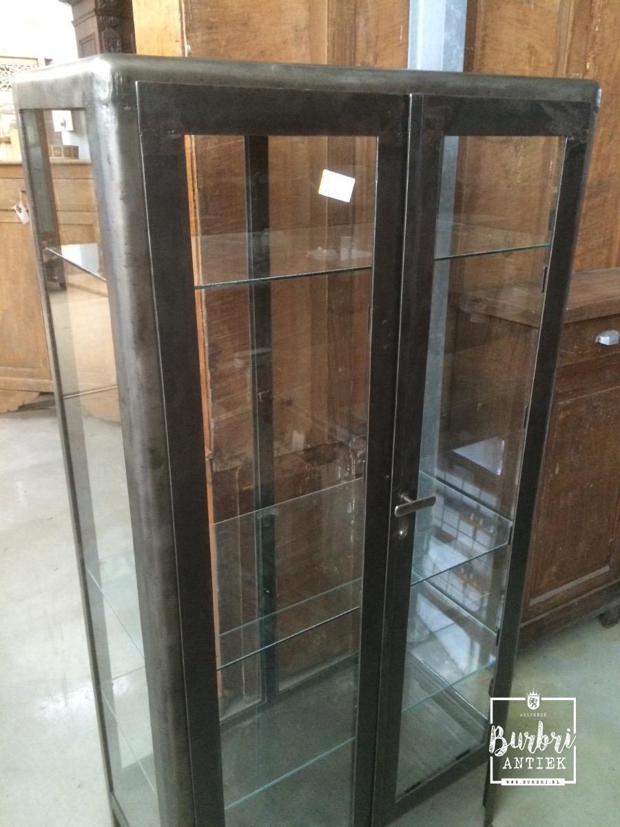 Industrial shopfittings style 2-doors old hospital cabinet in Glass metal, East Europe
